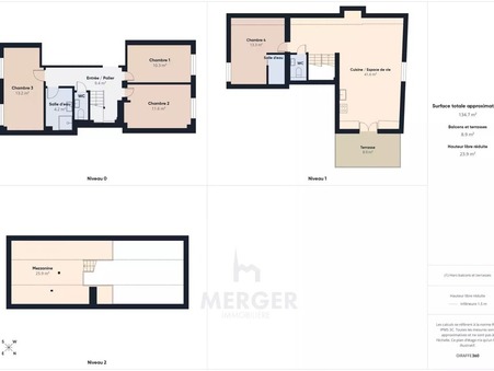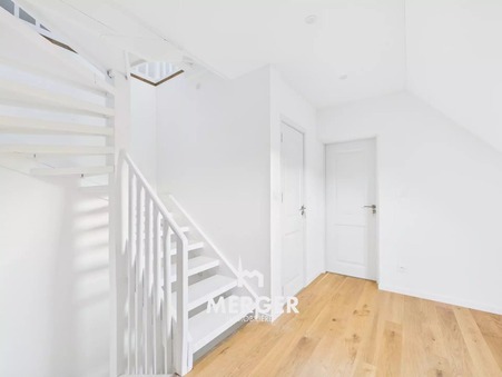 DÃ?©but Robertsau, Ã? proximitÃ?© immÃ?©diate des commerces et des transports en commun, rare Ã? la vente ! Dans une petite copropriÃ?©tÃ?© de 6 lots principaux, lâ€â?¢IMMOBILIÃ?Ë?RE MERGER vous propose cette maison de ville entiÃ?¨rement rÃ?©novÃ?©e, offrant 106,70 m² Carrez / 135,65 m² au sol, rÃ?©partis sur trois niveaux et situÃ?©e dans un secteur trÃ?¨s recherchÃ?©. Au rez-de-chaussÃ?©e, vous bÃ?©nÃ?©ficierez dâ€â?¢un double garage avec accÃ?¨s direct au jardin de 126 m². Cet espace extÃ?©rieur permet aisÃ?©ment lâ€â?¢amÃ?©nagement dâ€â?¢une cuisine dâ€â?¢Ã?©tÃ?©, idÃ?©ale pour profiter des beaux jours. Au 1er niveau, la maison comprend trois chambres, une salle dâ€â?¢eau ainsi quâ€â?¢un WC indÃ?©pendant. Au 2e niveau, vous dÃ?©couvrirez un lumineux espace de vie composÃ?© dâ€â?¢un sÃ?©jour ouvert sur une cuisine Ã?©quipÃ?©e et une terrasse de 8,90 m², un WC sÃ?©parÃ?©, une suite parentale avec salle dâ€â?¢eau privative, ainsi quâ€â?¢une mezzanine, parfaite pour une salle de jeux, un coin TV ou un bureau. Pour complÃ?©ter lâ€â?¢ensemble, une cave de plus de 50 m² avec fenÃ?ªtre offre de multiples possibilitÃ?©s de stockage ou d'amÃ?©nagement. Un bien rare sur le marchÃ?©, alliant rÃ?©novation soignÃ?©e, beaux volumes et emplacement privilÃ?©giÃ?©.