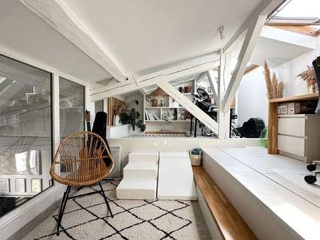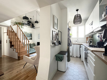 Paris 18Ã?¨me Marx Dormoy - rue Boucry. Au 5Ã?¨me et dernier Ã?©tage sans ascenseur, superbe 3 piÃ?¨ces de 50,71 m2 loi carrez et 68,70 m2 au sol. DÃ?¨s l'entrÃ?©e vous serez sous le charme de cet appartement en parfait Ã?©tat. Il se compose d'un sÃ?©jour avec espace salon et salle Ã? manger, d'une cuisine semi-ouverte amÃ?©nagÃ?©e et Ã?©quipÃ?©e, d'une salle de bain avec water-closet et d'une chambre avec rangements. A l'Ã?©tage supÃ?©rieur sous les combles un bel espace ouvert comprenant solarium, bureau et chambre. ChaudiÃ?¨re individuel au gaz. cave en sous-sol et jardin partagÃ?© avec emplacement vÃ?©los - Appartement baignÃ?© de lumiÃ?¨re, au calme et en parfait Ã?©tat ! Un vrai cocon ! (4.00 % d'honoraires TTC Ã? la charge de l'acquÃ?©reur.)