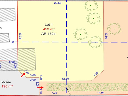 Merville -- Terrain plat viabilisÃ?© au calme en plein coeur du village. Assainissement tout Ã? l'Ã?©gout. Emprise au sol max : 181m2. LES PLUS : A deux pas des commerces et services, calme et sans vis Ã? vis, emprise au sol importante (40%). Parcelle entiÃ?¨rement viabilisÃ?©e 453m2 (Lot numÃ?©ro 1). Davantage de renseignements par tÃ?©lÃ?©phone.